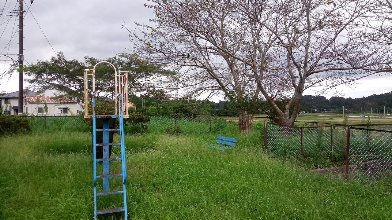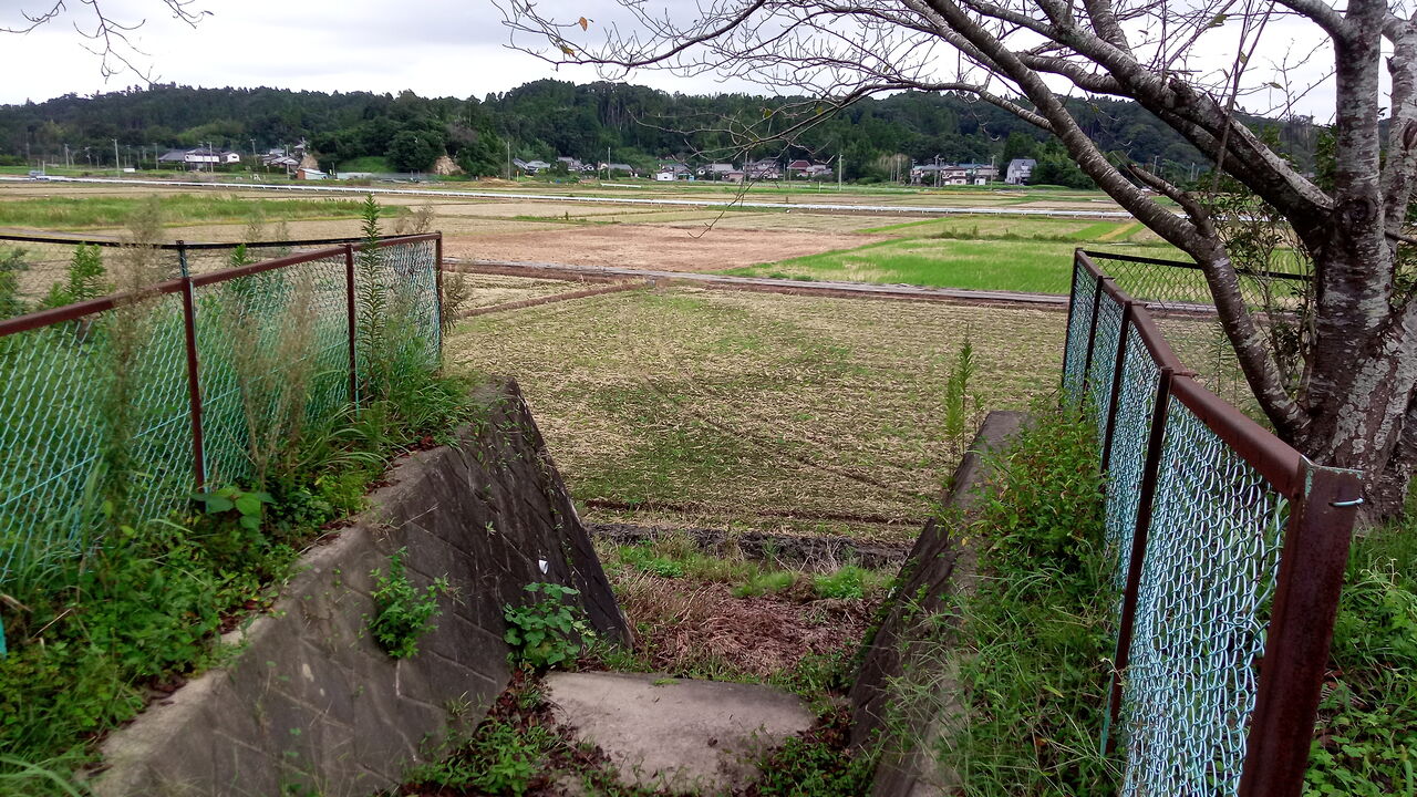 話を戻して福俵駅側の入口から団地へ向かうと、団地は周囲の水田と比較して少し小高い丘の上にあることがわかる。高低差がそれほどあるわけでもないが、周囲はそれこそ家屋もほとんどない広大な水田地帯なので、見晴らしはなかなか良い。今回の桜台団地の踏査も、元を辿ればこのロケーションに関心を持って取り組み始めたものだ。