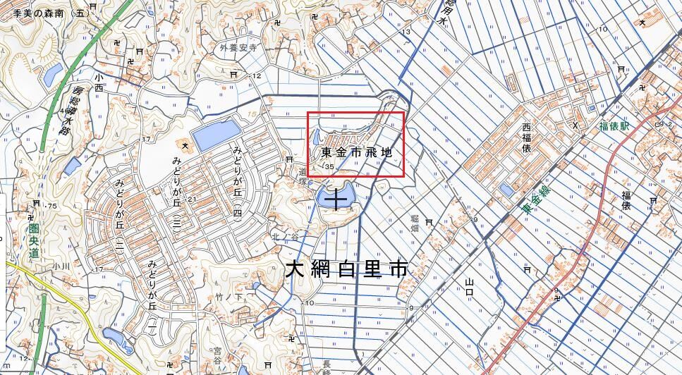 今回紹介する東金市の「桜台団地」も、そんな境界線分譲地と言うか、結論を先に言えばこの団地は、隣接する大網白里市に囲まれた立地に位置する東金市の飛び地であり、最寄り駅こそ東金線の福俵駅(東金市)であるものの、おそらく大網駅の利用を想定して開発されたと思われる住宅団地である。